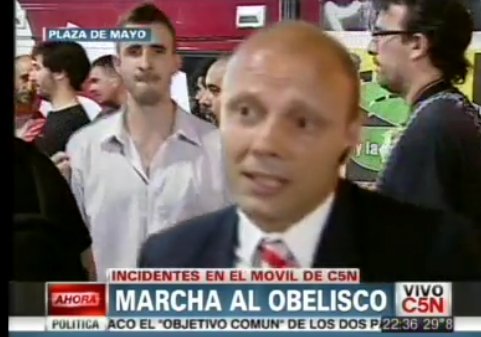 APCS-MA. Una violenta agresión se produjo en la marcha de los cacerolas en Buenos Aires. Agredieron a varios periodistas, entre ellos a los de C5N. También sufrieron agresiones la notera de 678 cuando ponía el único micrófono abierto de la TV Argentina