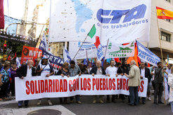 Bajo la consigna “Solidaridad con los pueblos europeos”, la Central de Trabajadores de la Argentina (CTA) se moviló esta tarde por el centro porteño.