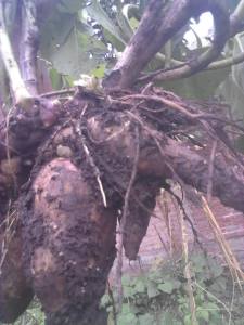 Primero fueron 6 meses de primavera/ Verano de un tremendo esfuerzo regando todos los días por la extendida sequía que ponía en riesgo la implantación y luego el descomunal exceso de lluvias de abril mayo que termino pudriendo la mitad de la producción potencial, afortunadamente hemos aprendido en estos cortos pero intensos tiempos de cultivar yacón y no solo salvamos los propábulos, sino que también vamos a cosechar una cantidad interesante. Y vamos a experimentar con doble periodo de cultivo.
