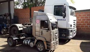 Le instaló una caja de Ford F100 del año 70, de tercera con cola corta adaptada, que quedó con la misma proporción del conjunto motor Cummins/caja ZF del camión real. La palanca de cambios mueve solo para delante y atrás (primera marcha con palanca hacia adelante y marcha atrás palanca hacia atrás) con los cambios superpuestos y con una selectora neumática que permite seleccionar la segunda y tercera velocidad.