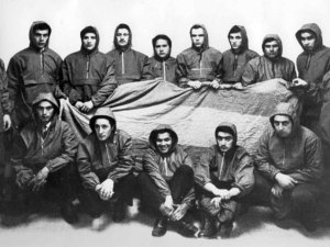 Ponen rumbo a las Islas Malvinas, aterrizan sobre una pista de carrera de caballos y enarbolan siete banderas argentinas. No eran guerrilleros, sino muchachos de la Juventud Peronista: trabajadores metalúrgicos, gremialistas, empleados y, el menor de todos estudiante.