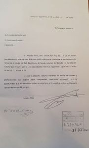 APCS. Renunció Andrés Melis Subsecretario de Modernización del Municipio de Malvinas Argentinas