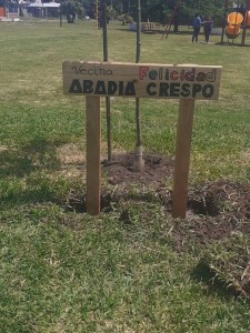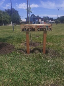 Por la mañana «Los Vecinos por la Memoria de Del Viso» en la Plaza de los Cachorros colocaron dos carteles en el Bosque de la Memoria con los nombres de las hermanas