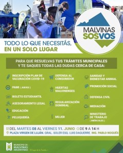 El operativo municipal «Malvinas Sos Vos» estará esta semana en Ingeniero Pablo Nogués. La misma se instalará desde hoy martes hasta el viernes en la Plaza Virgen de Luján (Gral. Soler esq. Luis Daguerre) con varios servicios municipales.