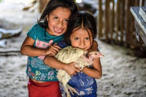 niña con gallina