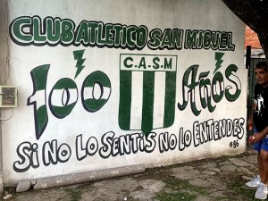El Club Atlético San Miguel cumple 100 años y para los hinchas del Trueno Verde no será simplemente un número, quieren que el Club llegue a los barrios y los corazones de los vecinos, de allí parte la idea de «100 años, 100 murales».