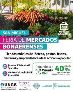 Este jueves 23/04 se instalará la feria en el Centro Cultural de la UNGS (Roca 850, San Miguel)