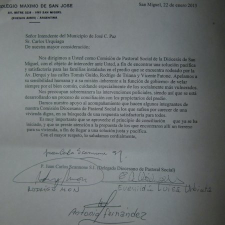 La Pastoral Social de San Miguel pidió al intendente de Jose C. Paz solución para el B° Nestor Kirchner