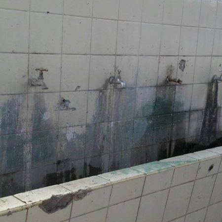 Paredes electrificadas por filtraciones de agua en la EEMN° 3 de Tortuguitas