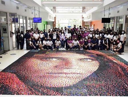 El Nacimiento de Venus hecho de 19.200 tapitas en el Instituto Nuestra Señora de Lourdes
