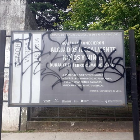 Organismos de ddhh repudian la vandalización del cartel que señaliza un sitio de la memoria en Moreno