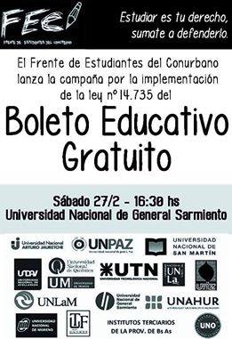 El Frente de Estudiantes Universitarios reclama en la UNGS el boleto educativo gratuito